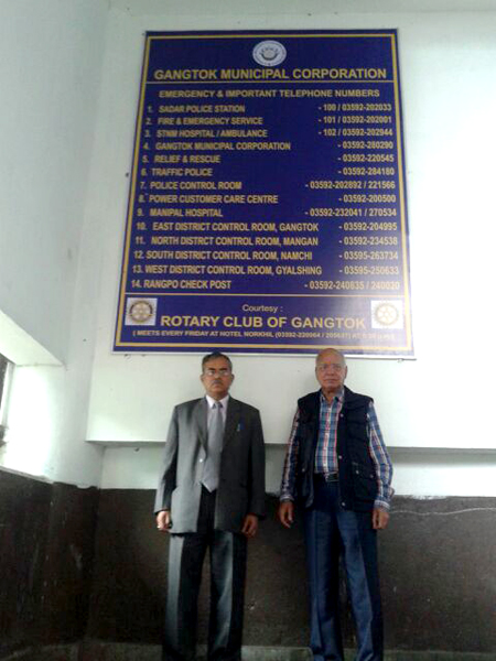 A sign board of Important and Emergency numbers of Sikkim was installed by the Club at Deorali Taxi Stand, Gangtok in collaboration with Gangtok Municipal Corporation. Expenses for the same was borne by the Club.