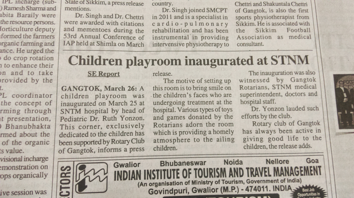 An exclusive room for the children to play in was renovated and decorated by Rotary Club of Gangtok at Pediatrics Ward, STNM Hospital, Gangtok